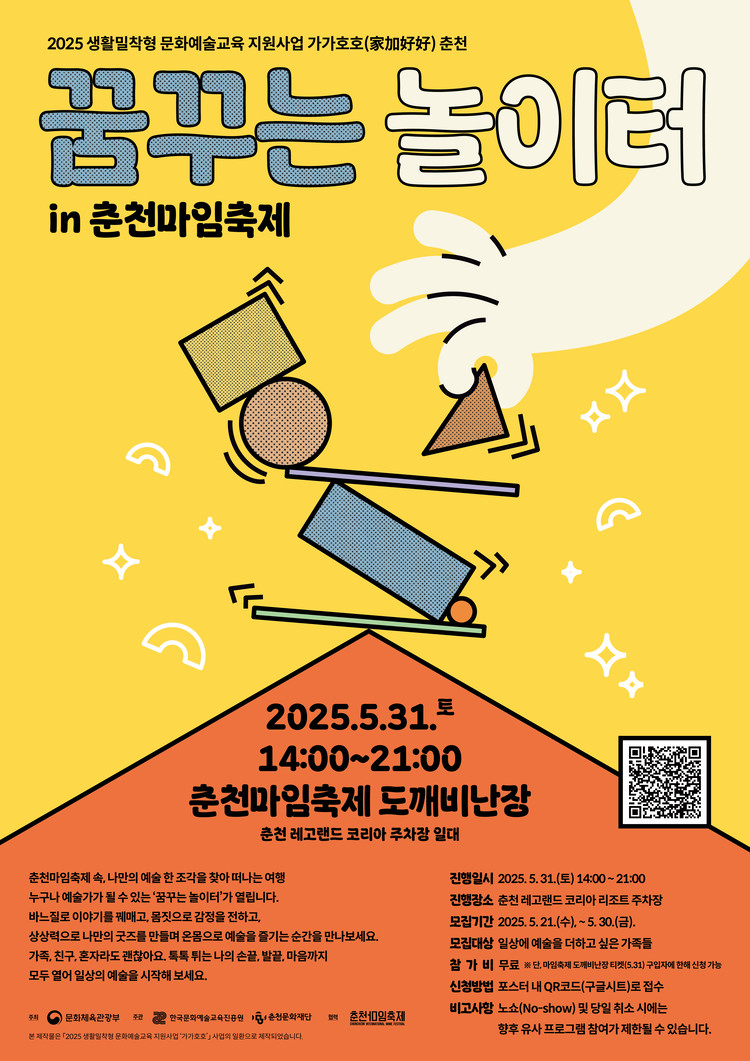☎ 문의전화 : 춘천문화재단 문화예술교육센터(033-259-5440)