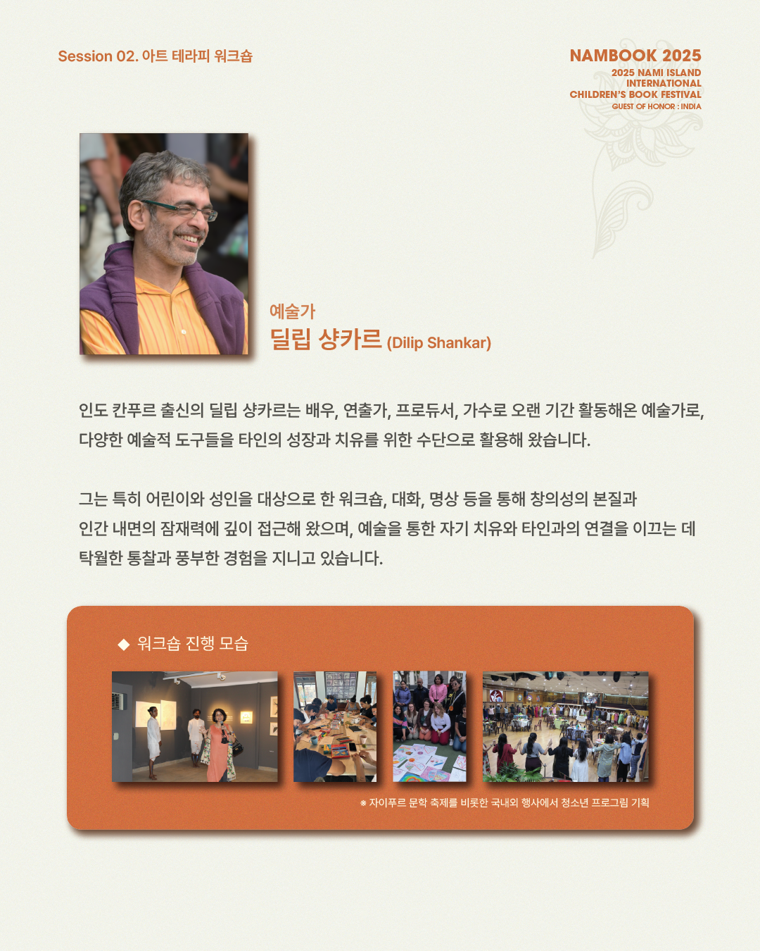 인도 예술가와 함께하는 특별한 시간을 마련합니다.
